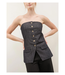 This denim bustier esigned to be fitted throughout with button down detailed. Crafted from non-stretch denim, this tube top features a straight-cut neckline and back, button-front closures, back smocking, seam detailing, and long tube top.