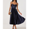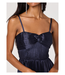 The Ascella dress is a timeless navy satin midi with a luxurious, luminous finish. It features slender spaghetti straps and a sweetheart neckline with a subtle knot detail at the bust, enhancing the structured bodice. The standout element is its flowing, accordion-pleated skirt that creates graceful movement with every step. Elegant and refined, this dress is perfect for cocktail parties, formal dinners, or weddings — especially when paired with silver heels and a sleek clutch.