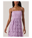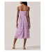 Scalloped hemline, fully lined; Adjustable straps; Pleating at waist, creating a flared skirt