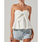 The Nerina Top is a strapless pelplum top featuring a front twist on the bodice.