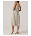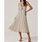 All over pleating, V-neckline; Ruffle trim detail along neckline and torso; Exposed upper back with self tie closure at back neck; Smocked center back; Fully lined, concealed back zipper