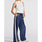The Ford Tencel Pants are blue with a denim like appearance and have a wide leg out. They feature two bold red and white stripes running down each side, adding a sporty flair. They have an elastic waistband for comfort and an overall relaxed fit.