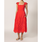 The square neckline and delicate cap sleeves with scalloped trim frame the shoulders beautifully, while the fitted bodice flows into a graceful midi-length skirt with convenient side pockets. The scalloped hemline adds a feminine finishing touch that sets this dress apart from ordinary pieces.
