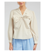 The Corrina Top has striped fabric featuring front bow with v-neck line.