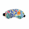 Cheerful cotton print eye mask, featuring a black flannel backing, elastic strap and adjustable velcro closure.