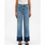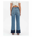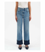 The Eastside Jeans are high-rise, straight-leg jeans made from mid-wash blue denim. They feature classic five-pocket styling, a button-and-zip fly, and prominent wide cuffs in a darker indigo tone for a bold contrast. The relaxed fit and ankle-length cut give them a casual yet fashion-forward look.