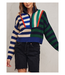 The Daisy Sweater features a half zip closure, slightly cropped and striped color blocks.