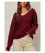 The Donna Sweater features a V-neck pullover sweater featuring a slouchy fit, drop shoulders, exposed seam detail, and ribbed knit trim.