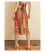 Paisley print midi skirt featuring a slight A-line shape, elastic back band with hidden zipper closure.