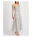 The Frances Dress is an open back maxi dress featuring a polka dot design.