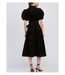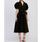 The Julien olive green velvet dress features a structured silhouette with puff sleeves, a collared neckline, and a wrap-style front. The wide, matching belt cinches the waist for a flattering shape, while the midi length adds timeless elegance.