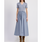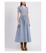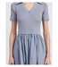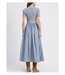 The Stenson dress combines a fitted ribbed knit polo-style bodice with short sleeves and a buttoned V-neck, paired with a gathered, full-length cotton poplin skirt. The soft slate blue tone and mix of textures give it a casual yet refined look.