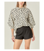 The Eliza Blouse features a collar, balloon sleeves and front buttons.