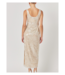 The Ella Dress features sequin fabric, a scoop neck and side slits.