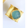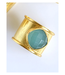 This handcrafted large stone ring features a faceted natural gemstone delicately bezeled into a gold cuff style base.