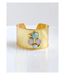 This handcrafted large stone ring features a faceted natural gemstone delicately bezeled into a two tone cuff style base.