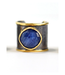 The Two-Tone Cuff Gemstone Ring is a hand-crafted bold look. With its wide fit, its sure to make your hand looked decked out.