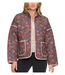This gorgeous lightweight quilted jacket is printed in earth tone florals and trimmed in contrasting colors at the seams, hem and pockets. Featuring patch pockets on the front and clasp closures, this boho inspired coat is a perfect addition to your fall wardrobe.
