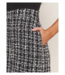 The Francis Jumpsuit is a ribbed knit top and tweed pant jumpsuit featuring mock neckline, short sleeve, side leg and back zipper closure.