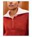 A warm winter roll neck knit, featuring long ribbed sleeves trimmed with a baby pink cuff and the pink half zip roll neck.