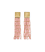 These chic post earrings are meticulously crafted with precision-cut luxe glass beads, showcasing a mesmerizing blush color that complements any outfit. The brass construction adds a touch of sophistication, while the gold stripe detail adds a subtle hint of luxury. These fringe earrings are a perfect accessory for those seeking a blend of style and elegance.