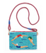 Poolside personality. Beaded swimmer motifs with bold colors and details. Detachable cord strap—carry it clutch-style or on the shoulder. Let it shine against neutral outfits.