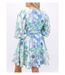 The Alexis belted dress features a V-neckline, puffy sleeves, and side pockets