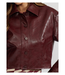 This is a cropped faux leather jacket in a deep burgundy shade. It has a structured, boxy silhouette with a clean, modern look.