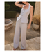 Chic from every angle—this halter vest is designed to make a statement. The open-back silhouette is complemented by a comfortable smocked panel, offering a flexible, flattering fit while keeping the look sleek and secure. A softly flared peplum hem adds a feminine touch and creates beautiful movement, enhancing the waistline for a perfectly tailored feel. Finished in a soft, elegant hue, this piece pairs effortlessly with the matching trousers or can be styled on its own for a polished, standout look.