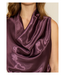 The Dorothy Satin Top features a sleek sleeveless design with a stylish cowl neckline that gracefully drapes for a sophisticated look.