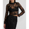 The Emmy Top features a sheer sequin detailed mesh overshirt and long sleeves.