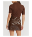 This stunning mixed media dress features a fitted sweater top paired with a sleek faux leather skirt, both in a luxurious espresso hue. The design contours your silhouette and hits above the knee, blending comfort with modern edge.
