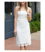 The Raye Skirt goes past the knee featuring a lace overlay.