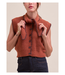 The Manny Sweater Vest features contrast stitching, a button down placket and tying neckline.