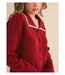 The Mason Cardigan features a contrast scalloped collar, a button up placket, and covered buttons.