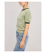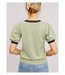Short sleeve knit top featuring contrast ribbed neckline and cuffs, puff sleeve design, and a regular-length fit.