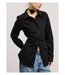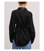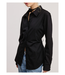 Long-sleeve collared shirt blouse featuring a front button-down closure, fitted silhouette, and includes a self-tie ribbon detail at the back for added structure.