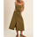 A softly structured denim midi silhouette meets an unexpected, open-back design—crisscross straps and a delicate lace-up detail create a striking, feminine finish. Effortlessly polished yet quietly alluring, it’s the perfect piece for warm evenings, outdoor dinners, or anywhere understated elegance makes an impression.