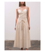 The Magnolia Cropped Top features a two tone contrast detail, adjustable spaghetti straps, sweetheart neckline, front ribbon bow tie detail, and back smocking.