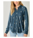 The Madison Shirt features a hi-lo hem, long sleeves and buttons down.