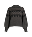 This knitted sweater has a classic patterned knit in a beautiful color combination, giving it a warm and stylish look. It features a round neckline and long, lightly balloon-shaped sleeves with wide ribbed cuffs, adding volume and character. The soft quality makes it both comfortable and suitable for layered looks of the season.