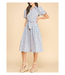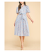 The Paxton Dress features a collared v-neckline, short bubble sleeves and flattering tied waist.