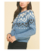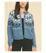 The Phoebe Cardigan features a round neck, knit Nordic pattern and long sleeves.