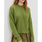 The Adina sweater is a cozy, chunky-knit piece in a vibrant pea green color. It has a classic crew neckline, long sleeves, and ribbed detailing at the collar, cuffs, and hemline for added structure. The fit is slightly relaxed with a boxy silhouette that sits just above the hips, giving it a casual yet polished appearance.