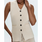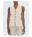 The Audra button up vest sits slim on the body with center front contrast button detail, high vee neck and splayed hem and knit in a soft ecru yarn.