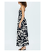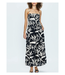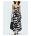 In full plumage. Breezy day dress crafted from a flowing, lightweight fabrication designed for warm weather wear. Smocked bodice with ruched design details, topped with adjustable shoulder straps. Birds of Paradise is a floral print in a vibrant, contrasting black and white.
