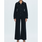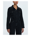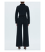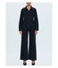Longsleeve denim jumpsuit with collared neckline and concealed snap button front closure. Five pocket denim design details with a wide leg silhouette and clean finished 32" inseam. Front flap pockets and directional seaming. Slope is a washed black denim hue with tonal stitching and chrome hardware accents.