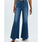 The Izzy mid rise wide leg showcases an slim top block and exagerrated wide leg silhouette with an unexpected kick flare to hem. Cut in a stretch indigo denim.