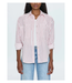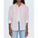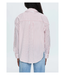 Relaxed button up shirt with a boyfriend-inspired fit and feel. Front button chest pockets, collared neckline, and cuffed sleeves. Offered in a classic oxford white decorated with red wide vertical striping.