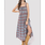 The Flannel Cure dress is a sleeveless, plaid midi dress featuring a soft blue and burgundy check pattern. It has wide straps, a gathered empire waist, and a tie detail at the neckline. The relaxed silhouette and button-front design give it a casual, country-chic vibe, perfectly paired with tan boots for a laid-back look.